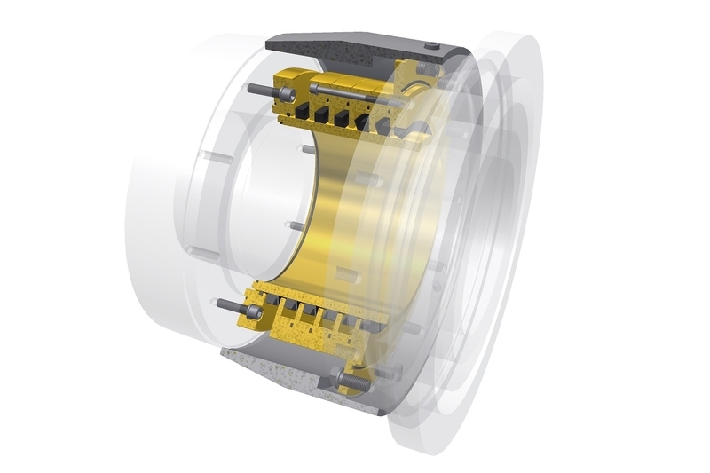 An outer seal consists of several bronze seal rings, each with a chamber containing an elastic, V-shaped sealing ring. These seals rotate with the propeller shaft and seal axially against the seal ring. Depending on the mounting direction of the sealing rings, this principle acts as a water-retaining or lubricant-retaining device.
